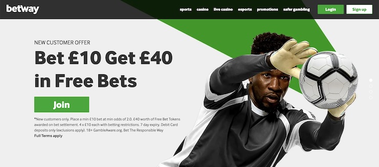 Betway’s welcome offer is the most straightforward in this comparison: place a qualifying bet of £10 at minimum odds of evens and receive £40 in free bets, the highest free bet credit available across the five operators reviewed here. No promo code is required, the qualifying bet can be placed on any sport, and the free bets are credited within 24 hours of the qualifying bet settling.
