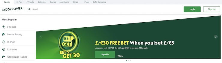4. Paddy Power — Best Betting Site Not On GamStop for Cash Back Offers