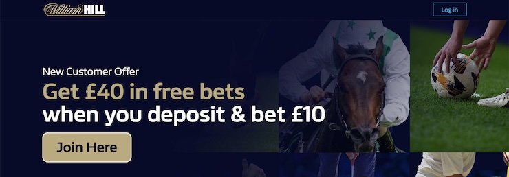 William Hill4.7/5Deposit and Bet £10, Get £40 in Free BetsMarket Depth and Heritage